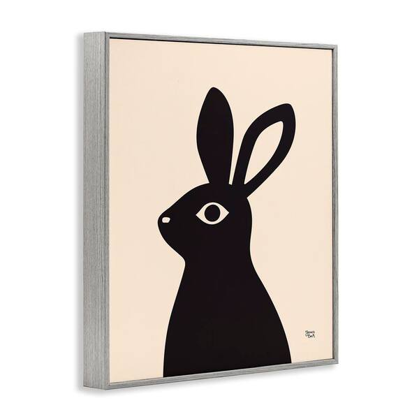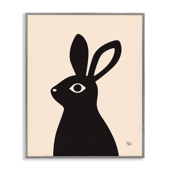 Black Bunny on Cream by Jessica Beck Gray Framed Animal Giclee Art Print 20 in. x 16 in.