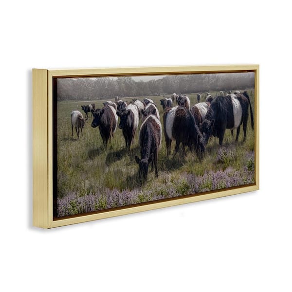 Black Cows Grazing in Pasture by Robin-Lee Viera Gold Floater Frame Animal Graphic Art Print 11 in. x 25 in.