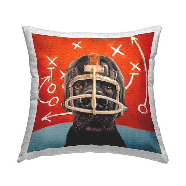 Black Dog Football Helmet Red Sports Plays Multi-Color Square Outdoor Throw Pillow