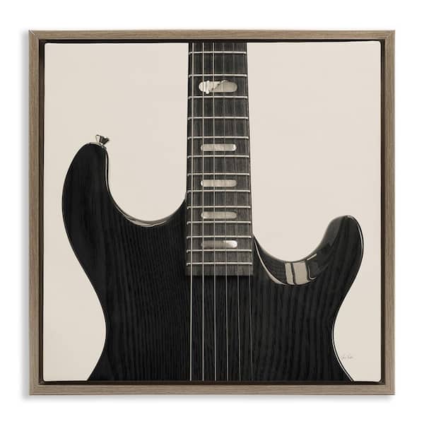 Black Electric Guitar by Deborah Revell Brown Floater Frame Music Graphic Art Print 25 in. x 25 in.