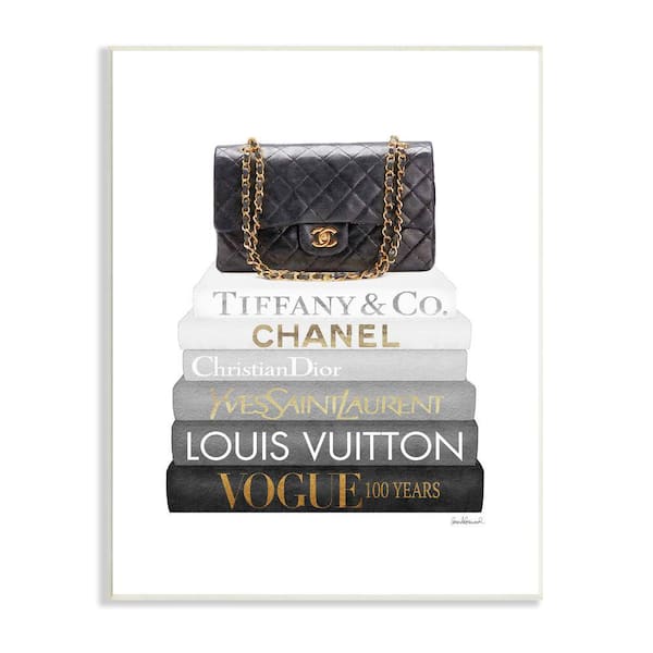 "Black Glam Purse Chic Modern Bookstack" by Amanda Greenwood Unframed Abstract Wood Wall Art Print 13 in. x 19 in.