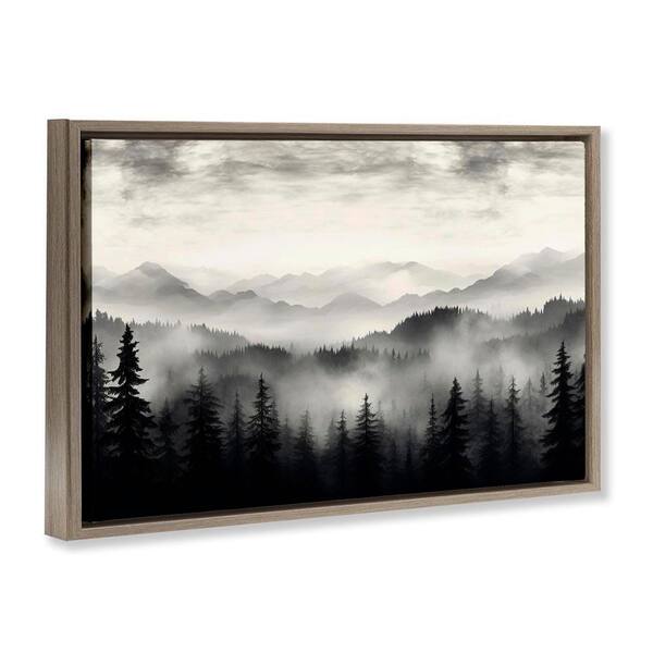 Black & White Gradient Mountains by LSR Design Studio Brown Floater Frame Nature Graphic Art Print 17 in. x 25 in.
