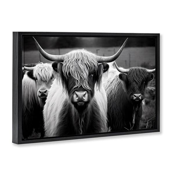 Black & White Highland Cows by Franklyn Gregory Black Floater Frame Animal Graphic Art Print 21 in. x 31 in.