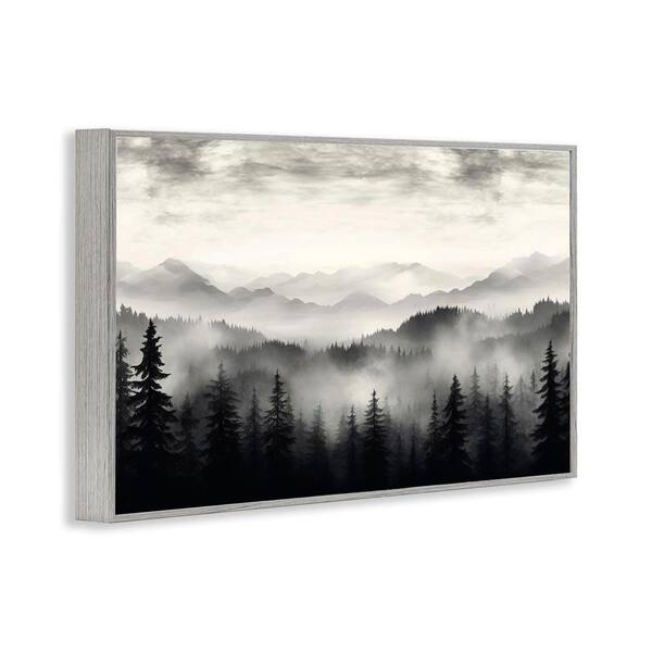 Black and White Gradient Mountains by LSR Design Studio Gray Framed Nature Giclee Art Print 12 in. x 18 in.