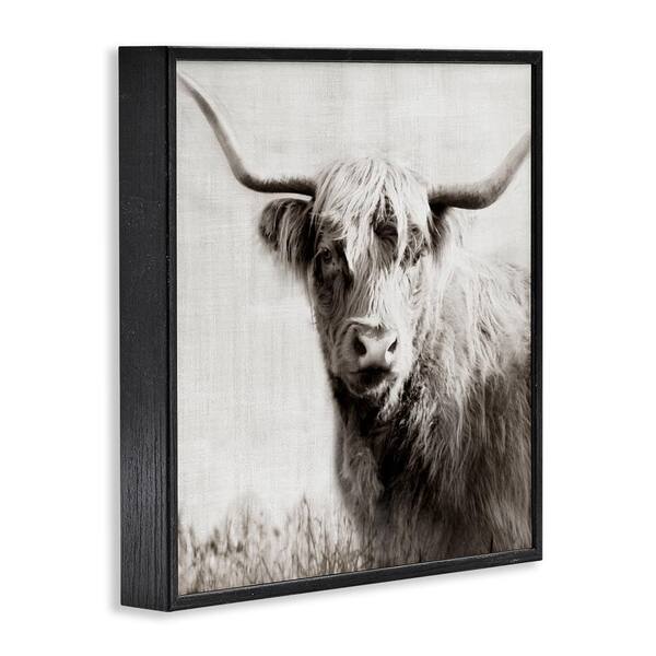 Black and White Highland Cow by Danita Delimont Black Framed Animal Giclee Art Print 12 in. x 12 in.