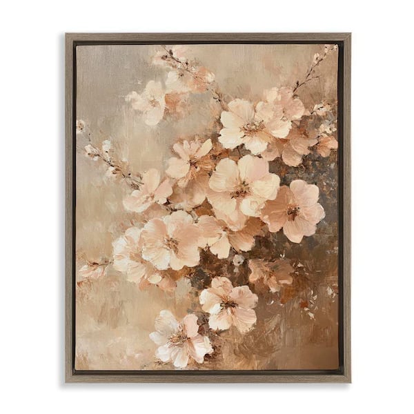 Blooming Cherry Blossoms by Petal Prints Design Brown Floater Frame Nature Graphic Art Print 31 in. x 25 in.