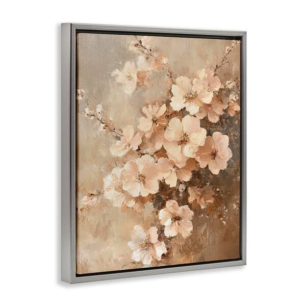 Blooming Cherry Blossoms by Petal Prints Design Gray Floater Frame Nature Graphic Art Print 31 in. x 25 in.