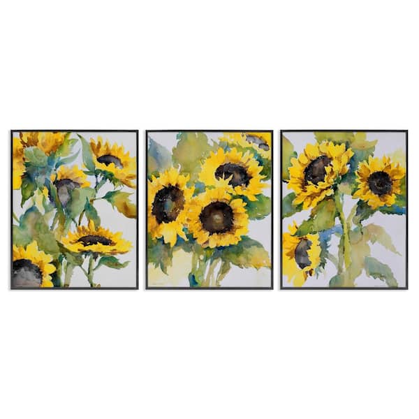 Blooming Country Sunflowers by Theresa Troise Heidel 3-Pieces Black Framed Nature Giclee Art Print 14 in. x 11 in.