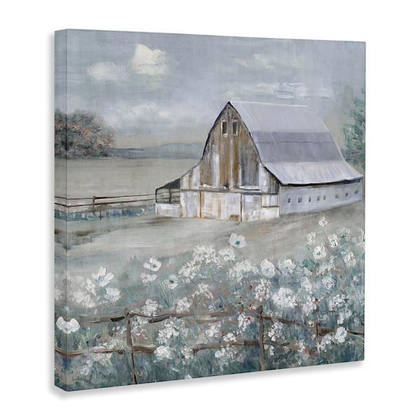 Blooming Farmhouse Meadow by Sally Swatland Unframed Nature Graphic Art Print 36 in. x 36 in.