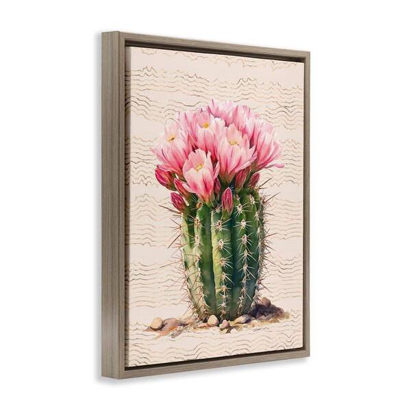 Blooming Floral Cactus by Lettered and Lined Brown Floater Frame Nature Graphic Art Print 31 in. x 25 in.