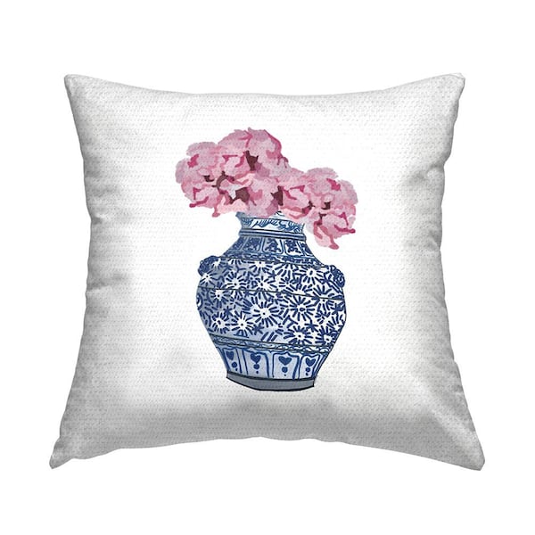 Blooming Flower Bouquet Ornate Pattern Vase Blue Square Outdoor Throw Pillow