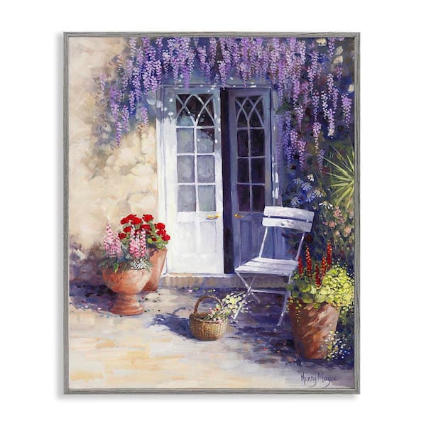 Blooming Lavender Doorway by Hilary Mayes Gray Framed Architecture Giclee Art Print 30 in. x 24 in.