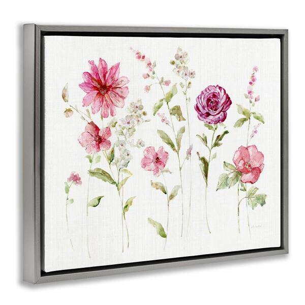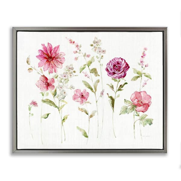 Blooming Rose Sprigs by Sally Swatland Gray Floater Frame Nature Graphic Art Print 17 in. x 21 in.