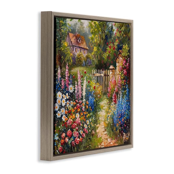 Blooming Spring Cottage by LSR Design Studio Brown Floater Frame Nature Graphic Art Print 18 in. x 18 in.