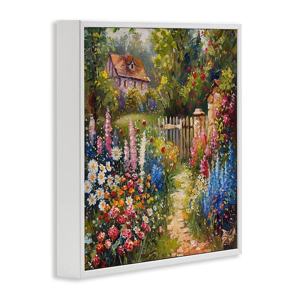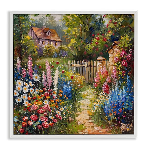 Blooming Spring Cottage by LSR Design Studio White Framed Nature Giclee Art Print 12 in. x 12 in.