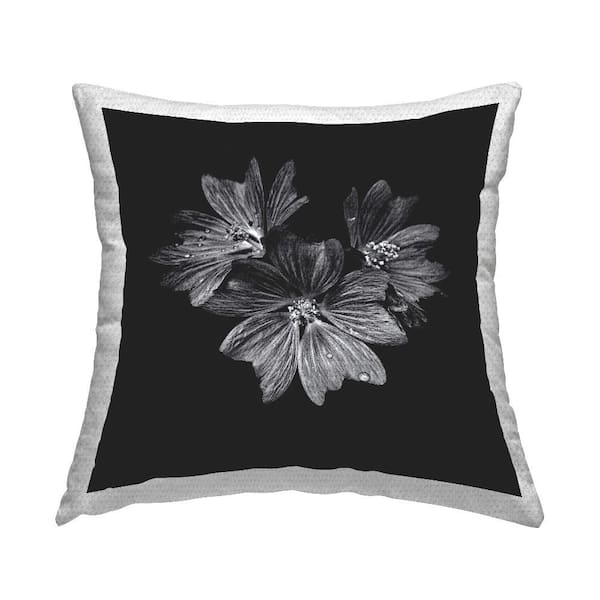 Blossom Trio on Black Black Square Outdoor Throw Pillow