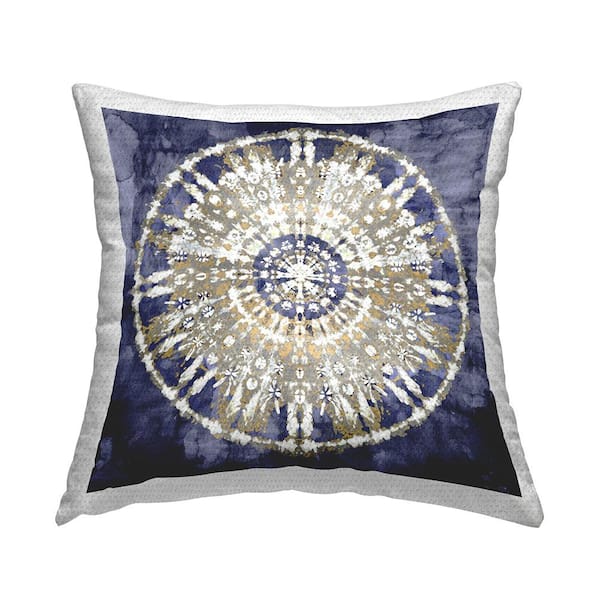 Blue Boho Medallion Pattern Blue Square Outdoor Throw Pillow