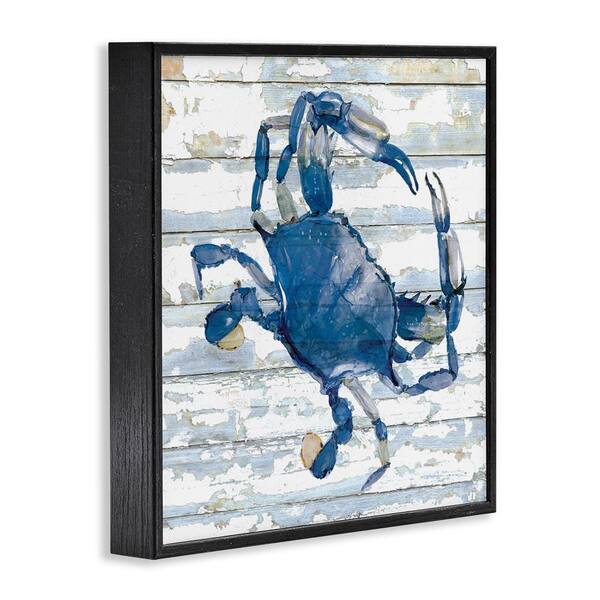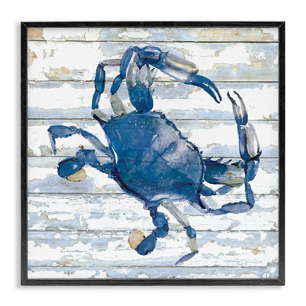 Blue Crab on Distressed by Jessie Perry Black Framed Animal Giclee Art Print 24 in. x 24 in.