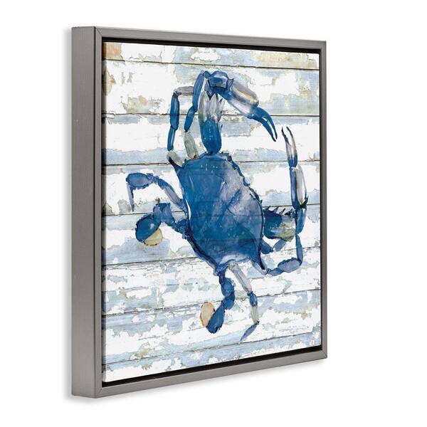Blue Crab on Distressed by Jessie Perry Gray Floater Frame Animal Graphic Art Print 18 in. x 18 in.