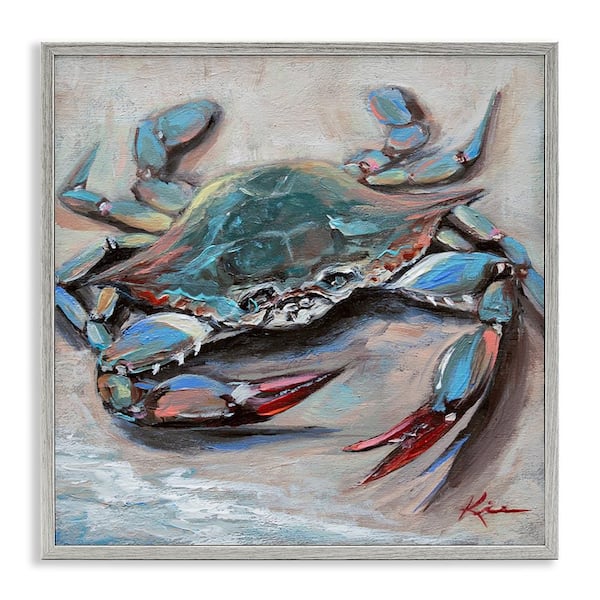 Blue Crab with Red Claws by Lindsay Kivi Fine Art Gray Framed Coastal Giclee Art Print 24 in. x 24 in.