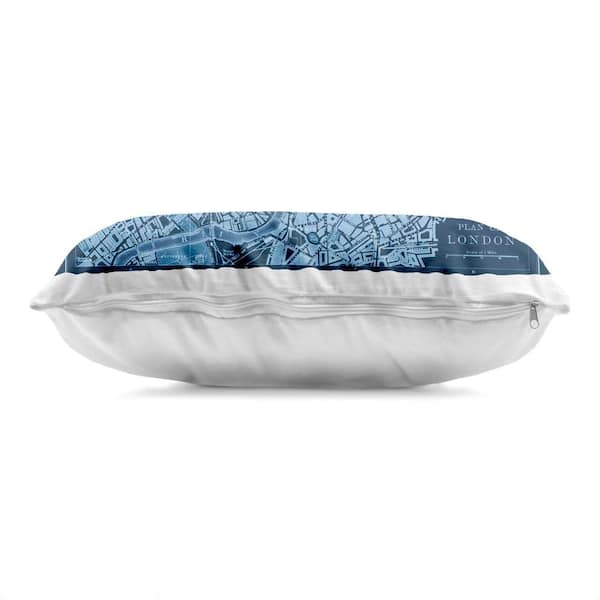 Blue Detailed London Map Blue Abstract Polyester 14 in. X 20 in. Throw Pillow