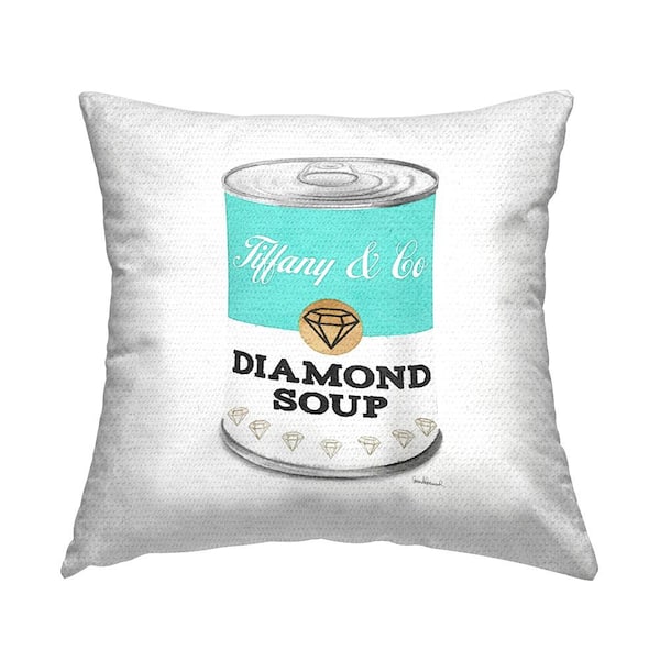Blue Fashion Condensed Diamond Soup Glam Pop Blue Square Outdoor Throw Pillow