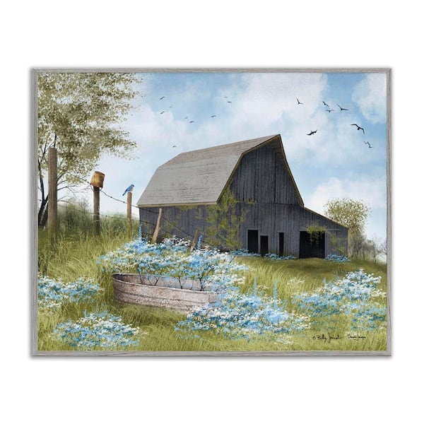 Blue Floral Country Garden by Billy Jacobs Gray Framed Nature Giclee Art Print 24 in. x 30 in.