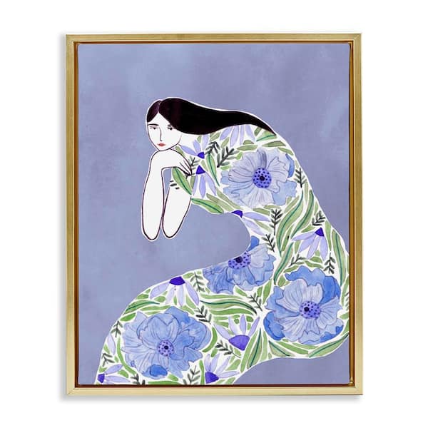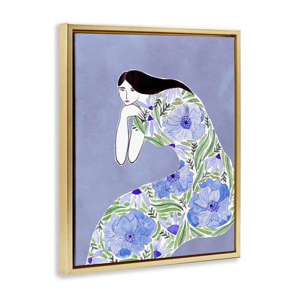 Blue Floral Dress by Melissa Wang Gold Floater Frame People Graphic Art Print 21 in. x 17 in.