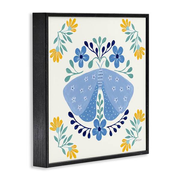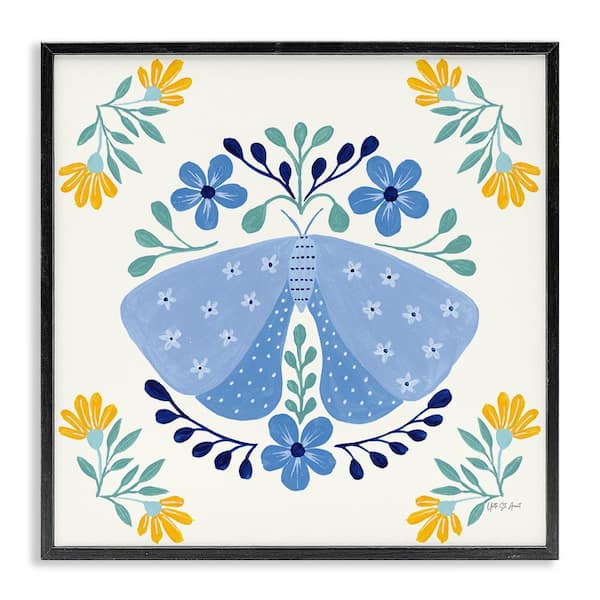 Blue Folk Butterfly by Yvette St. Amant Black Framed Animal Giclee Art Print 24 in. x 24 in.
