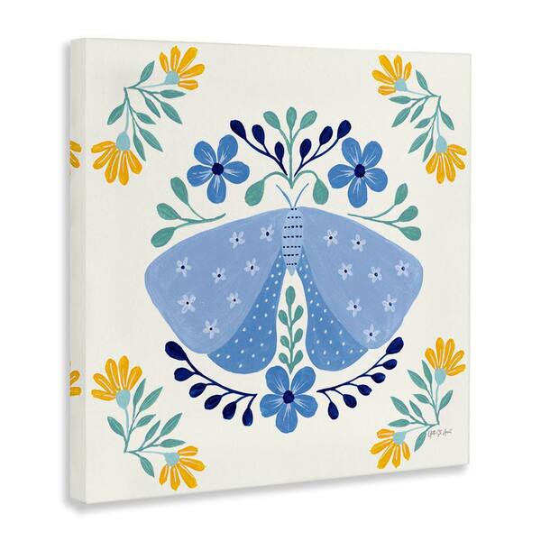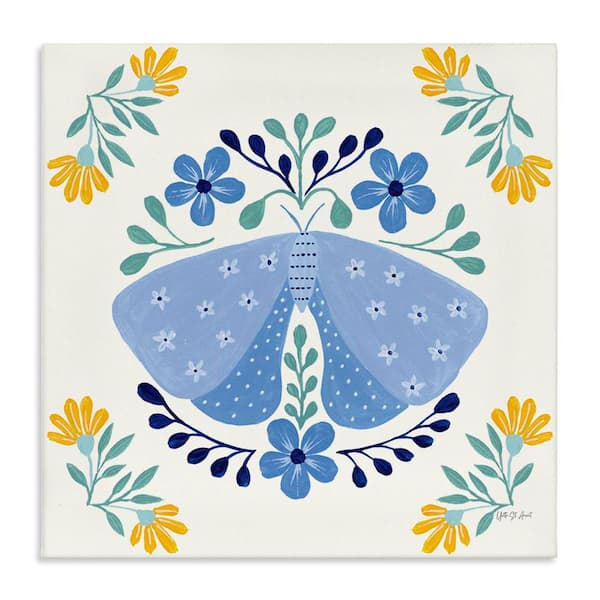 Blue Folk Butterfly by Yvette St. Amant Unframed Animal Graphic Art Print 30 in. x 30 in.