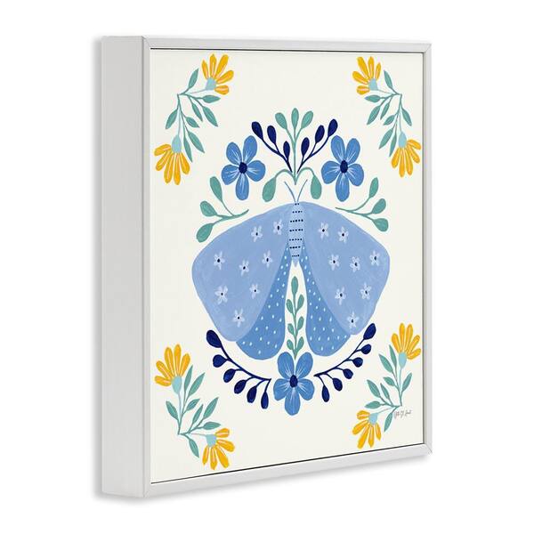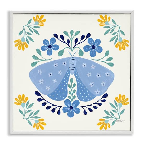 Blue Folk Butterfly by Yvette St. Amant White Framed Animal Giclee Art Print 24 in. x 24 in.