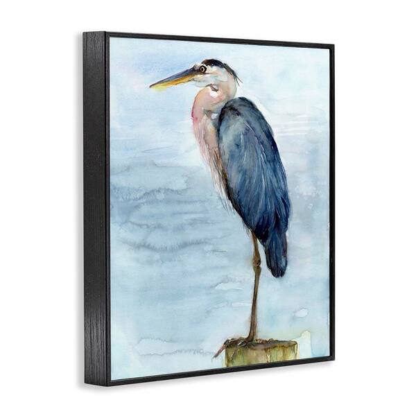 Blue Heron's Perch by John Keeling Black Framed Coastal Giclee Art Print 20 in. x 16 in.