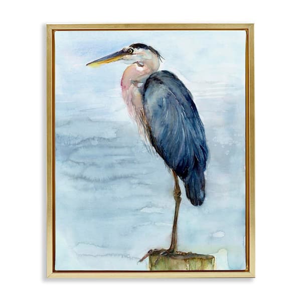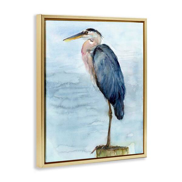 Blue Heron's Perch by John Keeling Gold Floater Frame Coastal Graphic Art Print 21 in. x 17 in.