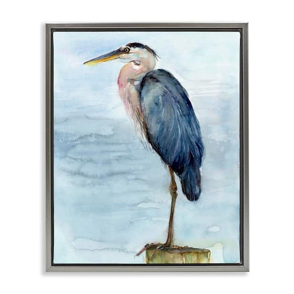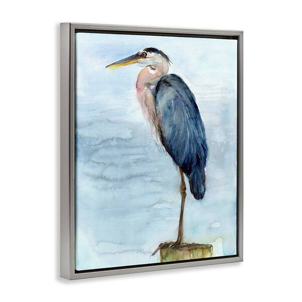 Blue Heron's Perch by John Keeling Gray Floater Frame Coastal Graphic Art Print 21 in. x 17 in.