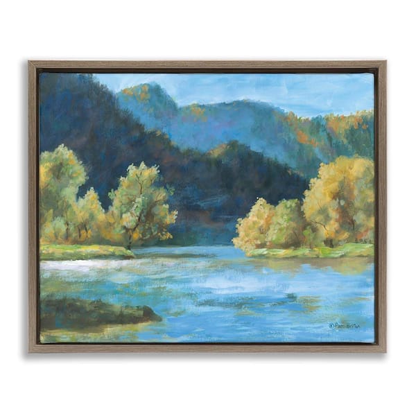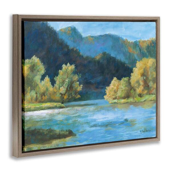 Blue Hued Mountains by Pam Britton Brown Floater Frame Nature Graphic Art Print 17 in. x 21 in.
