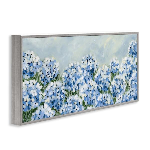 Blue Hydrangea Meadow by Yvette St. Amant Gray Framed Nature Giclee Art Print 13 in. x 30 in.