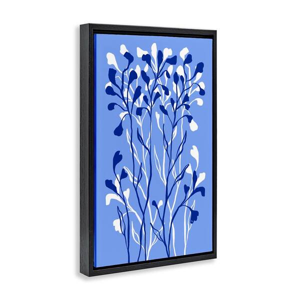 Blue Intertwining Sprigs by Martina Pavlova Black Floater Frame Nature Graphic Art Print 31 in. x 21 in.