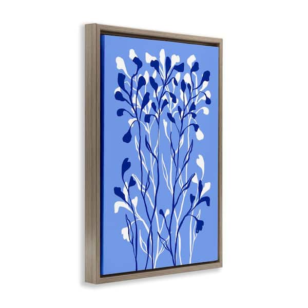 Blue Intertwining Sprigs by Martina Pavlova Brown Floater Frame Nature Graphic Art Print 25 in. x 17 in.
