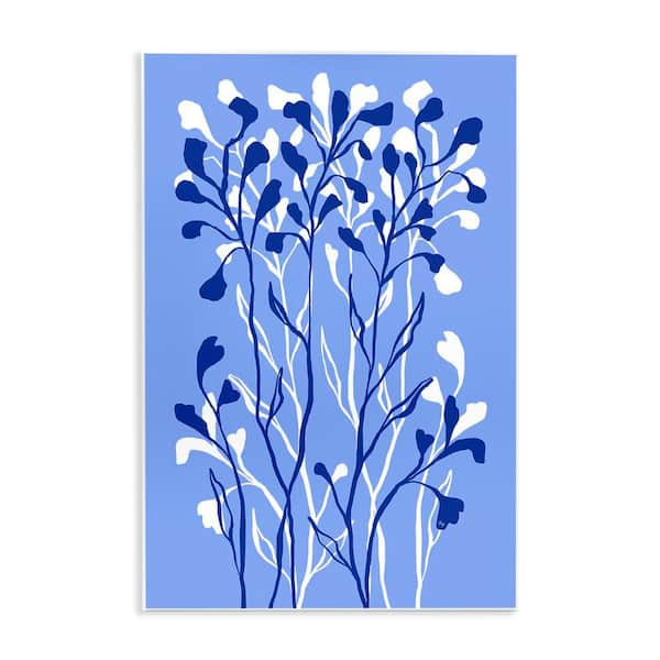 Blue Intertwining Sprigs by Martina Pavlova Unframed Nature Graphic Art Print 19 in. x 13 in.