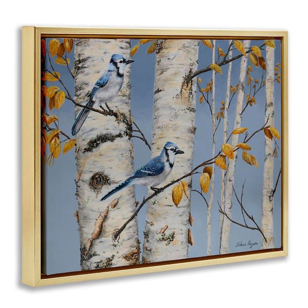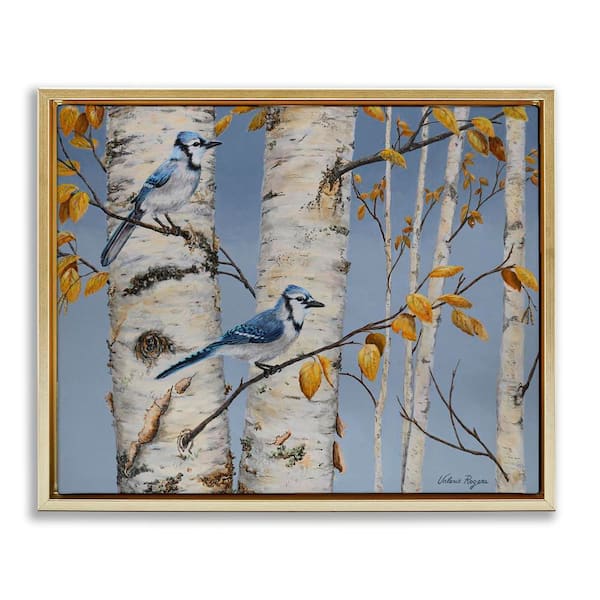 Blue Jay Autumn Day by Valerie Rogers Gold Floater Frame Nature Graphic Art Print 17 in. x 21 in.
