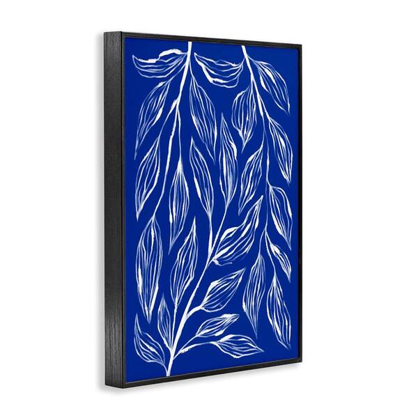 Blue Leaves and Grasses by Martina Pavlova Black Framed Nature Giclee Art Print 30 in. x 20 in.