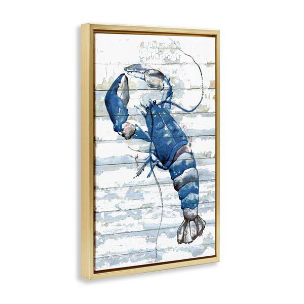 Blue Lobster on Distressed by Jessie Perry Gold Floater Frame Animal Graphic Art Print 25 in. x 17 in.