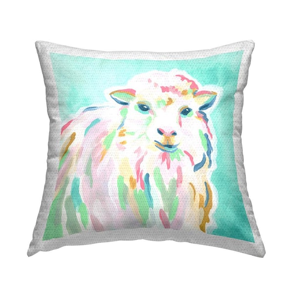 Blue Modern Sheep Blue Square Outdoor Throw Pillow