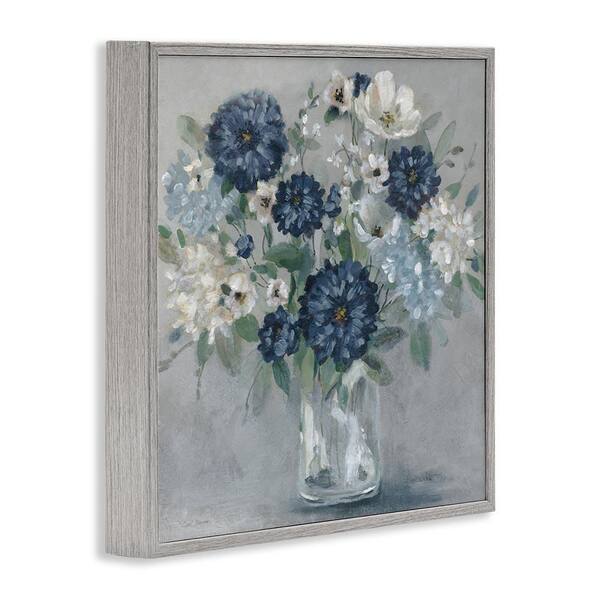 Blue Mums Mixed Bouquet by Carol Robinson Gray Framed Nature Giclee Art Print 17 in. x 17 in.