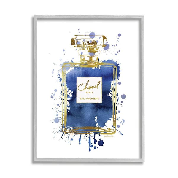 "Blue Pop Splash Glam Fragrance Bottle" by Amanda Greenwood Framed Abstract Wall Art Print 16 in. x 20 in.