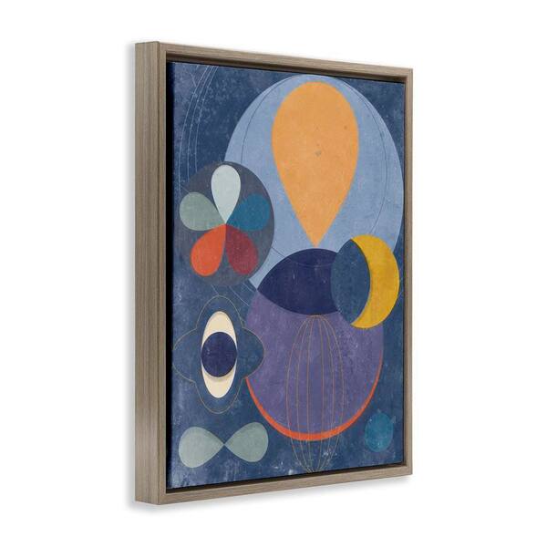Blue Retro Collage by Victoria Barnes Brown Floater Frame Abstract Graphic Art Print 31 in. x 25 in.