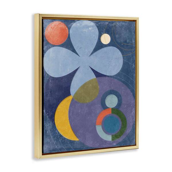 Blue Retro Curved Shapes by Victoria Barnes Gold Floater Frame Abstract Graphic Art Print 31 in. x 25 in.