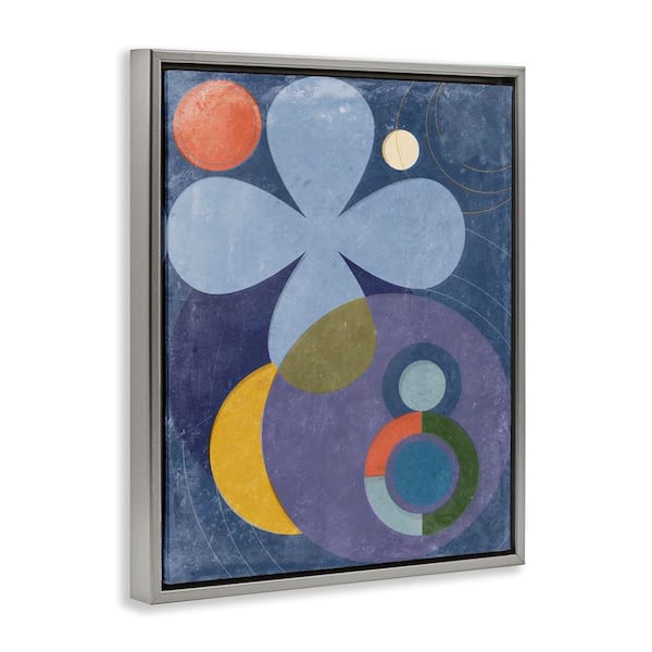 Blue Retro Curved Shapes by Victoria Barnes Gray Floater Frame Abstract Graphic Art Print 31 in. x 25 in.