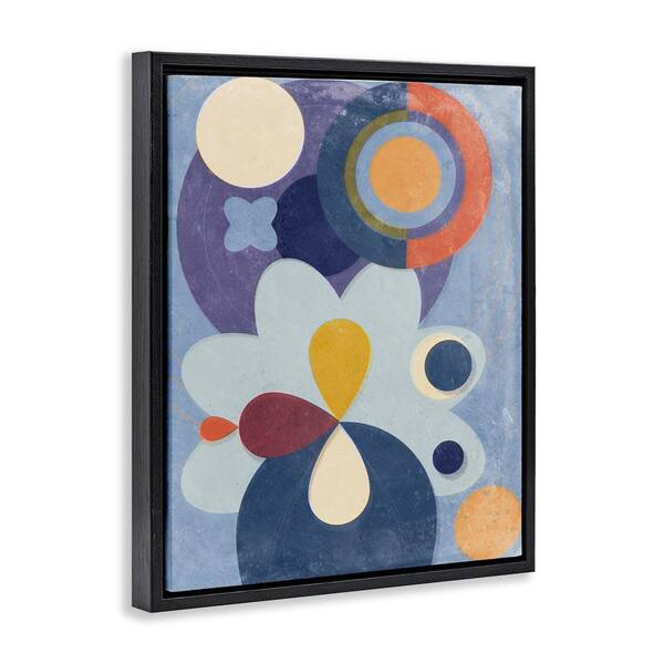 Blue Retro Shapes by Victoria Barnes Black Floater Frame Abstract Graphic Art Print 21 in. x 17 in.