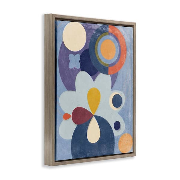 Blue Retro Shapes by Victoria Barnes Brown Floater Frame Abstract Graphic Art Print 21 in. x 17 in.